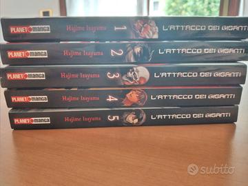 I primi 5 numeri del manga Attack on Titan, 3€ a numero, 10€ per tutti i numeri