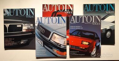 CEDO COLLEZIONE QUASI COMPLETA DELLA RIVISTA "AUTOIN VOGUE" PRODUZIONE DA FINE ANNI 80 A PRIMI ANNI 90. PRIMO NUMERO USCITO DIC.87/GEN.88 FINO AL N° 42 OTT./NOV. 1994. PERIODICITA' BIMESTRALE. PURTROPPO MANCANO DUE NUMERI IL 15 E IL 40. RIVISTE MOLTO BELLE, QUALITA' SUPERIORE CON PAGINE PATINATE. LE RIVISTE SONO IN OTTIME CONDIZIONI, DIREI PERFETTE. SFOGLIATE QUALCHE VOLTA AL TEMPO DELLA LORO USCITA E POI SEMPRE RIPOSTE A SCAFFALE TENUTE PERFETTAMENTE DRITTE. NON HANNO ALCUN SEGNO O SOLITE PIEGHE NEGLI ANGOLI.