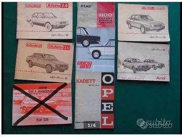 -LIBRETTI DI MANUTENZIONE: Opel Kadett –Alfa Romeo Alfetta-Giulietta-Alfa 90-Arna--Fiat 124 (10 euro cad)- Fiat 1100 (20 euro) brossura