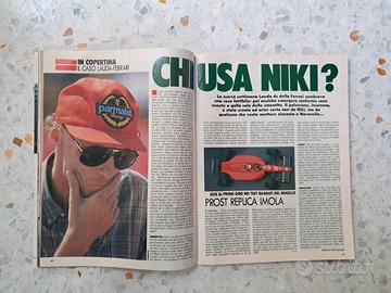 Caso Lauda-Ferrari: Viene affrontata la controversia (definita dal settimanale "una montatura") riguardante il possibile ritorno di Niki Lauda a Maranello in veste di consulente o dirigente, in un periodo di forte crisi per la scuderia. Mondiale Rally (WRC): Un approfondimento sul Tour de Corse (Rally di Corsica) e l'ottima prestazione di Carlos Sainz ("Super-Sainz"). Mondiale Sportprototipi: Il racconto della netta vittoria della Jaguar alla 430 km di Monza. 14 Come si prepara un GP in diretta 20 Formula Indy Come si preparano le monoposto per i catini Alla scoperta degli ovali Ecco quali modifiche è indispensabile fare per essere competitivi negli Speedway, dove si corre sul filo dei 250 kmh di media 28 Campioni iridati Denis Hulme, l'orso della F.1 35 Domenica notte l'opinione del direttore 36 Formula Uno Le ultimissime dal Circus 49 Prossimo GP Orari, tv e cifre del Gp di Monaco 50 Mondiale Sport Il secondo appuntamento a Monza 60 Tutte Velocità Panoramica sulle varie Formule 64 Formula 3 Con Vallelunga si entra nel vivo del tricolore 68 Rally L'italiano fa tappa in Sicilia con la Targa Florio 72 Tutte Rally In diretta dalle prove speciali 74 Mondiale Rally La Toyota domina anche in Corsica Sempre e solo Sainz Lo spagnolo è un rullo compressore. Carlos ha sorpreso gli specialisti francesi precedendo la Lancia di Auriol 84 F. Opel Lotus Brasiliani allo sbaraglio 88 Ford Day Lettori in pista con i campioni 90 Tutte Prodotto In diretta dal mondo dell'industria 92 La novità: l'Honda entra nella... Legend 100 L'altra domenica Le gare dell'altra settimana 106 Tutte Estero Cronache di gara da tutto il mondo 108 Tutte Karting L'attività in Italia e all'estero 110 Compravendita Mercato dell'auto di serie e da corsa 113 Calendario Dove corriamo nei prossimi fine settimana 114 Blob Sprint Fatti e curiosità dell'auto di ieri