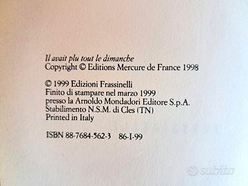 Libro "Aveva Piovuto Tutta la Domenica" Philippe Delerem, Frassinelli Prima Edizione 1999. Vintage. Copertina rigida, 125 pagine. Narrativa, romanzo. Come nuovo tranne che per un lieve ingiallimento, zero usura.