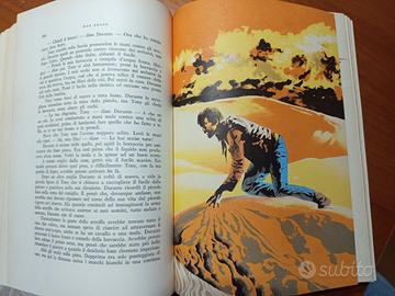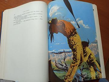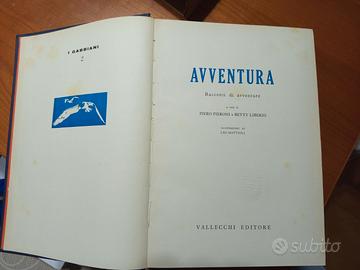 Vecchio libro Vallecchi editori avventura, racconti di avventura a cura di Piero Pieroni e Betty Liberio. Illustrazioni di Leo Mattioli. Il libro ha 670 pagine e molte illustrazioni a colori. Stampato nel 1958. Ci sono evidenti macchie di umidità soprattutto nelle prime e ultime pagine. La copertina sul dorso in alto è un po' rotta. Per il resto ok. Ha molte storie scritte anche da scrittore famosi tipo: Poe, Melville, London, Conrad, Doyle e vari altri.