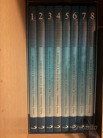 Bibbia per bambini a fumetto in 8 volumi Scoprire la Bibbia - Opera completa in 8 Volumi - SAIE - 1993 Scoprire La Bibbia - Edizioni Paoline SAIE - La Bibbia a Fumetti - 8 Volumi In Cofanetto Découvrir La Bible 1984 Larousse - Decima Edizione 1993 Tutta la Bibbia tradotta nel linguaggio dei fumetti, a cura di esperti biblisti. Strip di Pierre Frisano, Victor de La Fuente, Carlo Marcello, Josè Bielsa, Paolo Eleuteri-Serpieri, Raimond Poivet. Testo di Etienne Dahler Disegni Di José Bielsa, Paolo Eleuteri-Serperi, Victor De La Fuente, Raymond Poivet Presentazione di Gianfranco Ravasi Otto volumi a colori di pag. 154 cadauno, in cofanetto: I primi sei presentano l'Antico Testamento: 1. La creazione e i Patriarchi 2. Mosè, Giosuè, i Giudici 3. I Re: Saul, Davide e Salomone 4. I Profeti di Giuda e 'Israele 5. L'esilio a Babilonia 6. Il ritorno a Gerusalemme. Gli ultimi due il Nuovo Testamento: 7. Gesù di Nazaret 8. Nascita della Chiesa La semplicità e l’espressività del fumetto, qui realizzato da esperti e artisti di fama, permettono di far giungere il messaggio biblico in tutta la sua grandezza e di presentarla a un più vasto pubblico di giovani e di adulti. Oggi questo è possibile senza vincoli di ordine confessionale, in quanto conosciamo bene l’Antico Oriente e possiamo collocare la Bibbia in un preciso contesto storico. Le illustrazioni si ispirano ai documenti archeologici provenienti dai 15 secoli di storia d’Israele. Attraverso il fumetto il lettore vedrà mutare, storia dopo storia, gli usi e i costumi dei vari paesi d’oriente, dall’Egitto alla Mesopotamia, al mondo greco-romano. La Librairie Larousse e le Edizioni Paoline, che hanno già pubblicato storie a fumetti su alcuni grandi libri della cultura universale, presentano ora la più grande avventura dell’uomo: la Bibbia. L’opera è composta di otto volumi: sei sono dedicati all’Antico Testamento, due al Nuovo Testamento.