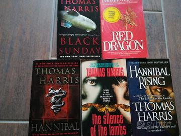Tutta la bibliografia di Thomas Harris: quadrilogia di Hannibal Lecter (Red Dragon, The silence of the Lambs, Hannibal Rising, Hannibal) più il primissimo libro da lui scritto Black Sunday. Tutti e 5 libri in lingua originale (inglese) in perfette condizioni per un must have da collezione di questo scrittore.