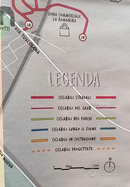 Bikeways Roma - La Mappa cartacea delle Piste Ciclabili di Roma (2021) 60x60 cm. Nuova mai utilizzata. Roma guide cicloturismo - guide eco-turistiche. Bikeways Roma. Roma a portata di bici: tutte le ciclabili con le altimetrie in una sola mappa per gli appassionati della pedalata che vogliono scoprire un aspetto inedito della Capitale. Da Montesacro a San Lorenzo, dal Villaggio Olimpico al quartiere Trieste-Salario, dal centro fino all'Appia e all'Eur: Roma è sempre più un reticolato di percorsi ciclabili che permettono di raggiungere in bicicletta quasi tutte le zone della città. "Bikeways Roma" è la mappa illustrata realizzata da Typimedia che contiene i 25 principali tracciati della Capitale, con lunghezze complessive, altimetrie e dettagli sulle caratteristiche dei percorsi. Il lavoro curato da Chiara Tescione (mappa) e da Giulia Argenti (testi) è uno strumento utile e semplice da consultare, con il suo pratico formato che si sviluppa fronte/retro. In ogni percorso sono segnalati i principali luoghi di interesse che si possono incontrare lungo la pista. Dal parco Regionale dell'Appia Antica, il più grande d'Europa, alle Terme di Caracalla, al Roseto, fino ai grandi centri dello shopping: Porta di Roma, Euroma2 e il nuovo centro commerciale Maximo, in via Laurentina.