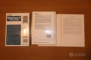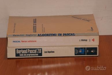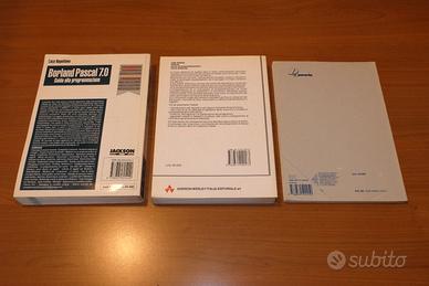 3 libri di programmazione in Pascal --- Judy Bishop PASCAL corso di programmazione terza edizione Addison-Wesley 1994 ottime condizioni (quasi mai usato) solo tra le pagine 23 e 28 sono presenti alcune righe evidenziate il resto del libro è intatto -------------------------------------------------- --- Luca Napolitano (SENZA FLOPPY DISK) Borland Pascal 7,0 Guida alla programmazione Jakson Libri 1993 ottime condizioni libro privo di scritte o altri segni NON E' PRESENTE IL FLOPPY DISK -------------------------------------------------- --- Walter Maraschini - Cristina Scagliarini Algoritmi in Pascal Paravia 1989 buone condizioni libro privo di scritte o altri segni -------------------------------------------------- VENDITA IN BLOCCO -------------------------------------------------- per interessati, inviare proposta di 95€, non meno