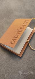 blocco appunti con copertina in pelle rigenerata e chiusura con filo di rafia.confezione originale