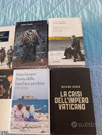 Vendo dieci libri in blocco. Titoli: - Di pietra e d'osso, Bérengère Cournut, Neri Pozza - I Gattopardi, Raffaele Cantone, Mondadori - Il branco, Andrea Carraro, Teoria - Storia della bambina perduta, Elena Ferrante, edizioni e/o - La crisi dell'impero vaticano, Massimo Franco, Mondadori - Le api, Meelis Friedenthal, Iperborea - La difesa di Luzin, Vladimir Nabokov, Adelphi - Foibe, Gianni Oliva, Mondadori - Necropoli, Boris Pahor, Fazi Editore - Collana"Tutti i romanzi" de La Stampa, Cesare Pavese, volume due: Prima che il gallo canti, Il carcere, La casa in collina, La luna e i falò