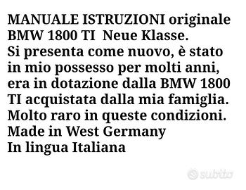 BMW 1800 TI manuale uso e manutezione, si presenta in buone condizioni, appartenuto alla mia famiglia, leggi lo scritto in foto. Originale in ITALIANO raro da trovare in queste condizioni. Libretto anche da collezione. Made in Germany