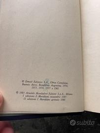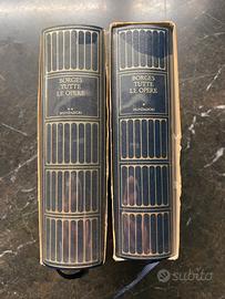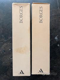 Tutte le opere di Borges nella pregiata edizione Merdiani di Mondadori. In ottimo stato con sovracoperta plastica originale (leggero danno in costa vedi foto) e segnalibri in tessuto. Cofanetti di cartone quasi perfetti (un leggero strappo su uno dei due).