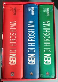 I tre volumi che compongono Gen di Hiroshima di Keji Nkazawa edito da Hikari Edizioni. I volumi sono in ottimo stato tranne che per la costina laterale in alto leggermente piegata e con un piccolo strappo nei volumi 2 e 3