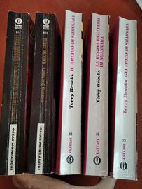 Lotto 5 libri in italiano della serie Shannara. I libri sono generalmente in buono stato, purtroppo la costa non è piegata come si vede nelle foto, dovuta ad un cattivo posizionamento di stoccaggio. Per questo il prezzo basso.