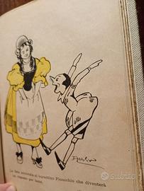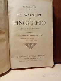 Nuovissima edizione 1924 Illustrazioni di A.Mussino e F.Vicoli e otto tavole a colori. R.Bemporad Firenze, in 8° pp. 175 Leg. tela e all'interno il Pinocchio. legg. rest. copertina, Pregevoli le ill. inizio e fine capitoli. e l'arresto dal carabiniere.