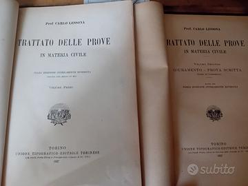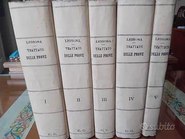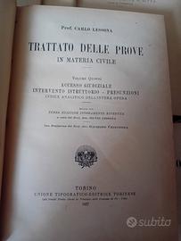 Trattato delle prove in materia civile. 5 Volumi Vol. I - Parte generale, confessione e interrogatorio. Vol. II - Giuramento, prova scritta (Libri di Commercio). Vol. III - Prova scritta. Vol. IV - Prova, testimoniale, perizia. Vol. V - Accesso giudiziale, intervento istruttorio, presunzioni, (indice analitico dell'intera opera). Con prefazione del Prof. Avv. Giuseppe Chiovenda UNIONE TIPOGRAFICO-EDITRICE TORINESE TORINO 1927 LIBRI GIURIDICI VINTAGE Discrete condizioni, inevitabili segni del tempo, presenza sulla pagina del frontespizio di ogni volume timbro della legatoria, ininfluente ai fini della consultazione. leolibri&collezionismo#