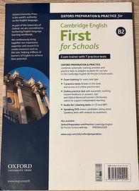 Vendo Oxford Preparation & Practice for Cambridge English First for Schools B2 – Exam Trainer con 7 practice tests. ISBN 978-0-19-411512-4. Include audio scaricabile e accesso a test online. Ottimo per la preparazione all’esame FCE. Prezzo: €15 trattabili. Solo ritiro a mano a Trieste. Per info scrivimi in privato.