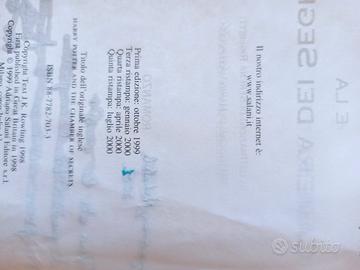 Harry Potter e la camera dei segreti, prima edizione, quarta ristampa, prima traduzione, copertina rigida Salani! Libri con il primo font con Harry Potter scritto in STAMPATELLO MAIUSCOLO, presente solo nei volumi più vecchi, come la copertina in stoffa rossa. il libro presenta dei difetti dovuti agli anni del libro. presenti dei segni di bianchetto.Milano.Se avete bisogno di altri libri, in qualsiasi versione, forme geometriche, brossure, scritta latina, prima edizione, prima traduzione scrivetemi pure invierò il prima possibile foto dei volumi richiesti.