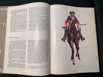 340 pp. Tavole originali uniformologiche di Andrea Viotti.Queste pagine descrivono vicende storiche di tre secoli di vita di una delle più antiche e brillanti Armi dell'Esercito - la Cavalleria - Ricca documentazione iconografica, in parte di autori d'epoca, in parte inedita e di carattere prevalentemente uniformologico.con sovraccoperta illustrata in buono stato