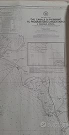 Carta Nautica Didattica 5/D, dal Canale di Piombino al Promontorio Argentario e Scoglio Africa. Idonea per esercizi di carteggio di preparazione all'esame per patente nautica entro le 12 miglia e senza limite dalla costa. Stampa in bianco/nero. Arrotolata senza pieghe in un rigido tubo di cartone Dimensione 115 x 80 cm. Istituto Idrografico della Marina