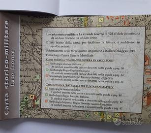 Progetto editoriale che parla della 1 Guerra Mondiale nel Trentino Occidentale nella Val di Sole. il prodotto editoriale è costituito da un bel volume storicoco-fotografico di 72 pag che descrive gli eventi bellici in Val di Sole e da una cartolinaguida costituita da cartografia storica (1:100.000 e 1:25.000) del 1915 dell'Istituto Geografico Militare Italiano, nella cartografia sono stati elaborati ed inseriti ben 36 tipi diversi di simboli: