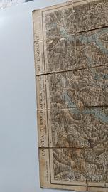 Raro pezzo di carta topografica pieghevole su supporto telato del LAGHI LOMBARDI DEL 1898.