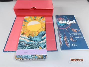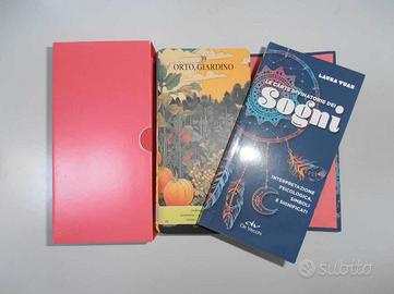 1) "Le carte divinatorie dei sogni. Interpretazione psicologica, simboli e significati. Con 52 Carte". L'astuccio con chiusura magnetica presenta una correzione sul bordo interno per leggera scollatura (visibile foto 4). Il sogno è gioco, follia, liberazione, messaggio o strumento di consapevolezza: grazie a lui si svelano i nostri segreti, le nostre paure, i nostri desideri. Questo kit insegna a interpretare i sogni guidando negli angoli più remoti della propria coscienza, aiutando a capire la situazione in cui ci si trova e indicandole la strada da seguire. All'interno: 52 carte divinatorie e un manuale di istruzioni. 2) "Il linguaggio segreto deiTarocchi" (a richiesta invio altre foto). Le grandi civiltà del passato hanno adottato sistemi divinatori basati sull'interpretazione di simboli, tra cui iTarocchi. La loro nobile tradizione si è tramandata dal Medioevo ai giorni nostri. Elementi di un linguaggio che con la sua ricchezza simbolica, nelle sue molteplici combinazioni, consente di sondare la parte più profonda dell'essere umano, fanno affacciare nel futuro con le sue innumerevoli e vertiginose possibilità. Questo libro è una guida per scoprire gli Arcani e i loro significati, per dare una risposta agli interrogativi più intimi ed entrare in comunicazione con la propria parte più profonda. I Tarocchi non sono altro che un linguaggio simbolico, di cui ogni carta è una parola, che - estratta in un certo momento e in associazione con le altre - va a costituire una combinazione, una frase, che opportunatamente interpretata consente di perforare il diaframma altrimenti proibito del futuro. All'interno: "La cartomanzia e gli Arcani: la previsione, come mescolare il mazzo, il consulto"; "Gli Arcani maggiori"; "Gli Arcani minori seme per seme"; "I giochi divinatori: con gli Arcani maggiori, con gli Arcani minori, con il mazzo completo". Articoli come nuovi, non utilizzati (magazzino). Spedizione con TuttoSubito. A richiesta: con pacchetto raccomandato (€ 5,00).
