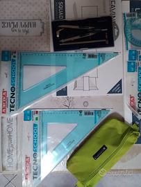 cartellina con squadre + compasso + righe