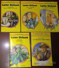 17 thriller di Carter Dickson alias John Dickson Carr della collana “I Classici del Giallo Mondadori” come da elenco e titoli nelle foto allegate. Solo in blocco €.34,00 +eventuali spese di spedizione (rientrante nei 5 kg). Stato dei volumi precisato puntualmente nella foto due: generalmente in stato ottimo o buono, solo un paio in stato mediocre. Preferibile consegna a mano in Caserta o zone limitrofe. Restituzione non accettata in caso di spedizione.