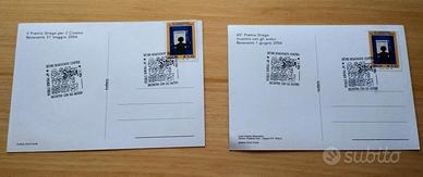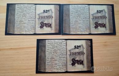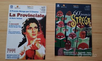 Set di cartoline commemorative con annullo filatelico del Premio Strega - Incontro con gli Autori a Benevento, anni 1998 e 2006. Una cartolina con il poster del film La Provinciale di Mario Soldati, una cartolina con il poster del 60° Premio Strega - Incontro con gli autori, tre cartoline con il logo del 52° Premio Strega e le firme dei vincitori.