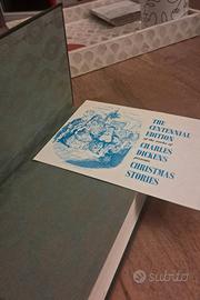 A matching two-volume hardcover set of Christmas Stories by Charles Dickens, issued as part of a decorative Complete Works series. Bound in dark green leatherette with gilt borders and central medallions to boards, gilt lettering to spines, and decorative endpapers. Illustrated throughout, including a frontispiece portrait of Dickens.
