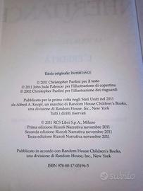 Ciclo dell'eredità - saga di Eragon - Christopher Paolini Eragon edizione (2004) Eldest VIII edizione (2005) Brisingr prima edizione (2008) Inheritance terza edizione 2011