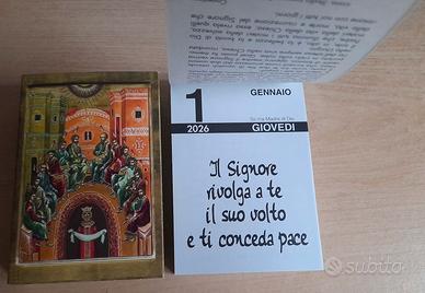 Su ogni foglio, per ogni singolo giorno dell'anno, è riportato il calendario con i Santi del giorno, un pensiero biblico e passi delle Sacre Scritture