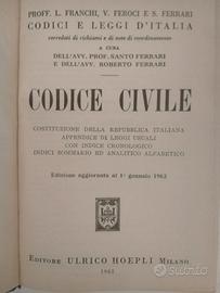 Codice civile di Franchi-Feroci-Ferrari. Della casa esitrice Hoepli anno 1962. Il libro non presenta scritte o pagine rovinate.