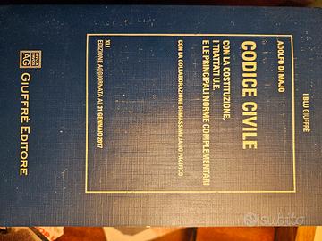 Codice civile con Costituzione, trattati UE e principali norme complementari della serie I Blu Giuffrè, XLI edizione 2017, a cura di Adolfo Di Majo. Vendo a prezzo simbolico (12 €, costava 29)
