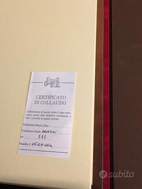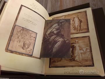 Raccolta di disegni, bozzetti e miniature dei più grandi artisti italiani. Realizzato in tiratura limitata di 1000 esemplari numerati questa è la copia 441/1000. Condizioni eccellenti. Rilegatura in pelle con impressioni in oro. Questo libro da collezione è stato realizzato nel 2003. Custodia cofanetto in cartone rigido rivestita in tessuto marrone.