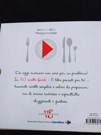 Cofanetto 50 ricette facili Accademia Barilla, 5 volumi cartonati Antipasti, Primi piatti, secondi piatti, contorno, dolci, ciascuno dedicato a una specifica portata. Include ricette fotografate e spiegate in modo semplice per la cucina di tutti i giorni