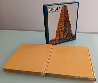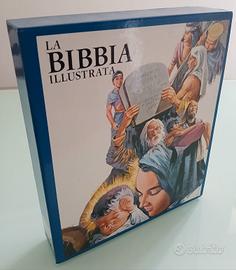 Cofanetto contenente due volumi de "La Bibbia Illustrata", suddivisi in Antico Testamento e Nuovo Testamento.