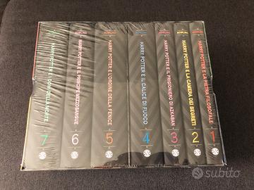 Vendo cofanetto nuovo ancora sigillato dell'edizione dei 20 anni della saga. Illustrato da Brian Selznick con le copertine in bianco e nero che affiancate formano un'unica immagine. Da collezione.