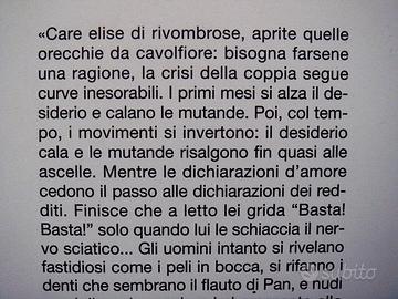 1) Col cavolo. "Care elise di rivombrose, aprite quelle orecchie da cavolfiore: bisogna farsene una ragione, la crisi della coppia segue curve inesorabili…";