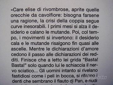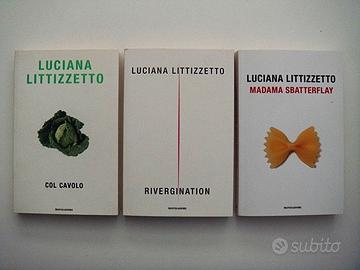 Tre libri di Luciana Littizzetto, Mondadori Editore, edizioni originali 2004 - 2007 - 2012, in perfette condizioni: 1) Col cavolo. "Care elise di rivombrose, aprite quelle orecchie da cavolfiore: bisogna farsene una ragione, la crisi della coppia segue curve inesorabili…"; 2) Rivergination. "La rivergination si fa per evitare la svalutation e incentivare la devolution…"; 3) Madama sbatterflay. "Non ci resta che ridere, care madame sbatterflay. Anche se lo spread sale e il Walter scende, e a noi rimane solo il bandolero stanco, il nostro bell'addormentato nei boxer…". Il prezzo indicato si riferisce al singolo volume, per l'acquisto in blocco il costo è ridotto a 9,00 euro in tutto.