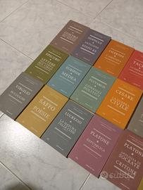 da Il corriere della sera i classici greci e latini di autori come Plutone, Seneca, Cicerone, Plutarco, Aristotele, Lucrezia, Saffo, Virgilio e altri visibili in foto per un totale di 22 libricini in doppia lingua