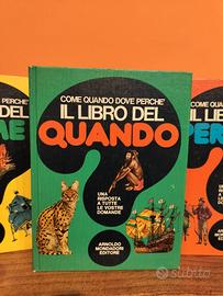 Collana di volumi vintage Mondadori, Il libro del Quando, il libro del Dove, il libro del Come, il libro del Perché. Anno 1973. Buone condizioni generali, copertine con colori ancora vividi. Visionabili altre foto su richiesta.