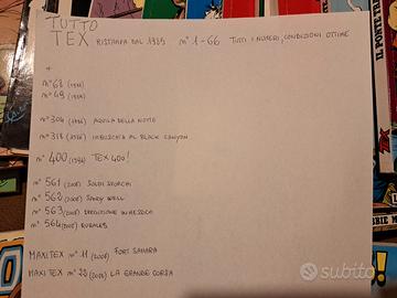 In buone/ottime condizioni, vendo collezione TuttoTex dal n°1 al n°66 , corredata da altri fumetti Tex e due edizioni speciali Maxi Tex.