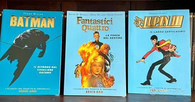 Splendida collezione oro sui fumetti. Tra questi l'Uomo Ragno, Tex, Diabolik, Superman, Lupo Alberto, Topolino, Dylan Dog, Mandrake, Marvels, Zagor, Batman, Nathan Never, Star Wars, Sturmtruppen, Puffi, i Fantastici 4, Simpsons, Lupin e tanti altri ancora.