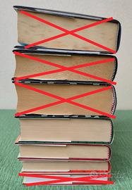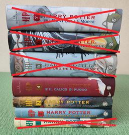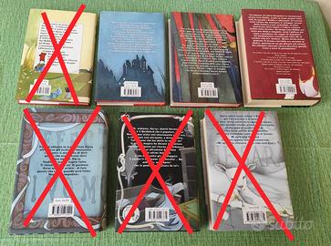 I volumi 1, 2, 3, 4 e 5 sono una ristampa della prima edizione Salani in copertina rigida con sovraccopertina, rispettivamente una 11° ristampa del gennaio 2001 in tela rossa con scritta dorata sul dorso, una 12° ristampa del giugno 2001, una 17° ristampa del gennaio 2002, una 4° ristampa del febbraio 2002 e una 14° ristampa del luglio 2007. I volumi 6 e 7 sono una PRIMA EDIZIONE ASSOLUTA Salani in copertina rigida con sovraccopertina, rispettivamente del dicembre 2005 e del gennaio 2008. Hanno la vecchia traduzione, ovvero quella con i nomi McGranitt, Tassorosso, etc. per fare qualche esempio. N.B.: LEGGETE ATTENTAMENTE LA DESCRIZIONE PER VEDERE QUALI SONO ANCORA DISPONIBILI E QUALI NO. Condizioni oggetto - Harry Potter e la pietra filosofale: ottime condizioni. 39 € (VENDUTO) - Harry Potter e la camera dei segreti: ottime condizioni. 38 € - Harry Potter e il prigioniero di Azkaban: buone/ottime condizioni. 35 € - Harry Potter e il calice di fuoco: ottime condizioni. 36 € - Harry Potter e l'Ordine della Fenice: buone condizioni. 35 € (VENDUTO) - Harry Potter e il principe mezzosangue: condizioni accettabili. 30 € (VENDUTO) - Harry Potter e i Doni della Morte: condizioni accettabili. 30 € (VENDUTO) Lotto intero 105 € Per ulteriori foto o informazioni sulle condizioni dei volumi scrivetemi in privato, grazie. Massima serietà.