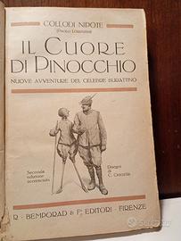 Collodi Nipote (Paolo Lorenzini) IL cuore di Pinocchio. Nuove avventure del celebre burattino. Seconda ed. acccresciuta, disegni di C.CHIOSTRI. Bemporad Editore in 8" pp. 233 + ind. Legg. rest. dorso. Copertina di Dario Betti.