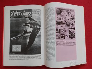 “Il Vittorioso” ha fatto la storia del fumetto italiano: è stato un influente settimanale a fumetti italiano (1937-1966), noto per autori come Jacovitti e Hugo Pratt. Pubblicato dall'Azione Cattolica (AVE) dal 1937 al 1966 è caratterizzato da una linea editoriale sana e pedagogica, si distinse per non utilizzare fumetti americani, lanciando invece autori italiani come Benito Jacovitti, in un periodo caratterizzato dal Fascismo e dal dopoguerra. La redazione del blog Fumettologica ha pubblicato un articolo molto esauriente su questo settimanale in data 17 giugno 2020, articolo originariamente apparso su Fumetto n. 114, pubblicato dall’associazione Anafi, con il titolo “Il Vittorioso: trentadue anni di storia… con un seguito”. Silvano Facci, cultore della materia e promotore iniziativa nazionale della rinascita de Il Vittorioso, alla fine nel 1993 ha pubblicato l'unico volume (dei quattro in progetto) del suo lavoro. Le molte tavole e i disegni riprodotti nelle oltre 300 pagine del volume permettono di farsi un'idea di come fosse Il Vittorioso, di cosa venisse pubblicato. Ma accanto alle riproduzioni ci sono i commenti e gli apprezzamenti entusiastici dell'autore. La prima parte del volume, invece, riporta tutti i finanziatori dell'opera. Volume in edizione limitata, inizialmente solo per la città di Schio (VI). 319 pagine 33 x 23 x 2,5 circa Edizioni Menin Stampato da Tipografia Operaia di Menin Claudio Tullio & C. S.N.C. di Schio (VI) nel dicembre 1993 Peso 1670 gr. circa Condizione: NOS Come Nuovo, non letto non usato. Prezzo: €400 Pagamento: bonifico bancario anticipato Spedizione: DHL Express
