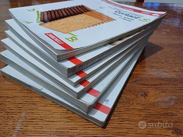 Alcuni esercizi e crocette a matita. Crocette spunta esercizi a penna su un paio di pagine.