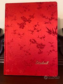 Coppia di quaderni con copertina in seta a piccola fantasia floreale formato A5 15x21 rosso e verde prodotti in Cina anni ‘70 Coperrina perfetta in ottimo stato di conservazione, carta leggermente ingiallita dal tempo