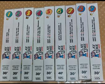 Corso inglese vintage Playtime della Curcio Editore, 18 cassette VHS + 18 Libri spiegazione/esercizi, praticamente nuovo