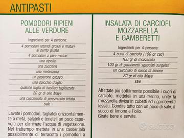 Due libri per mangiar bene e stare in forma: 1) Cucina con la verdura: ricette, consigli e calorie. Minestroni, risotti, verdure e legumi; i sempre pronti; torte vegetariane; le insalate speciali; torte e budini come contorno; salse e zuppe. I tempi di cottura, le difficoltà e le calorie, le ricette, i vini, le erbe e i segreti del cuoco. Collana idee in cucina, Orsa Maggiore Editrice, edizione originale marzo 1997, in ottime condizioni ma con nome scritto a penna sul retro della copertina. 2) Il gusto di mangiare sano: 110 ricette per una alimentazione equilibrata. Lisa Biondi e Bruno Berra, Editrice Azzurra, edizione originale, in ottime condizioni. Il prezzo indicato si riferisce ai due volumi insieme, che possono tuttavia essere acquistati singolarmente, al prezzo di 4,00 euro ciascuno.